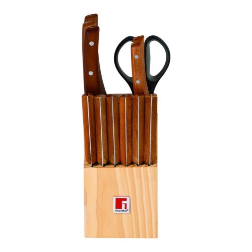 Ak pripravujete základné suroviny , budete s touto sadou nadmieru spokojní, pretože obsahuje 13 ks univerzálnych, veľmi kvalitných nožov . Sú vyladené tak, aby ste dokázali pracovať so všetkými štandardnými surovinami v kuchyni.