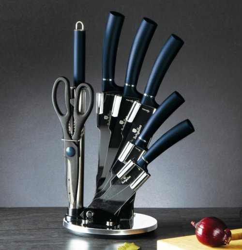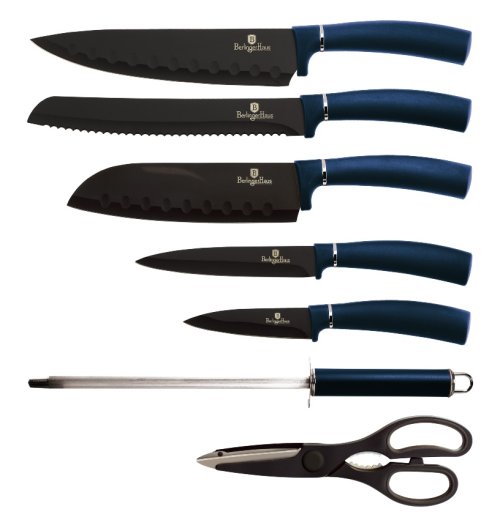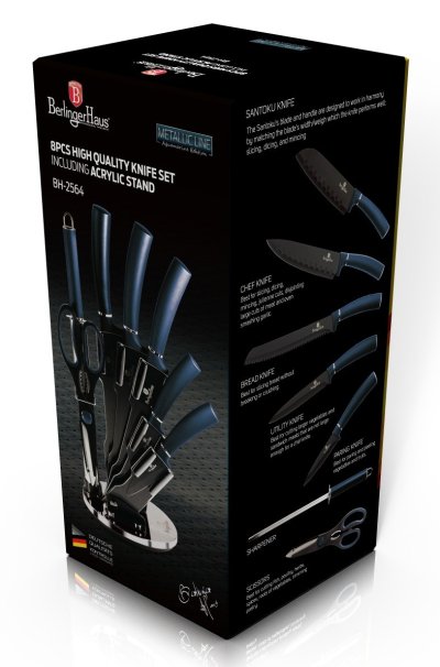 Sada nožov v stojane 8 ks Aqumarine Metallic Line je výbornou alternatívou pre kuchárov rôznych úrovní, na ktorej výrobu bol použitý kvalitný materiál: nerez oceľ s nepriľnavým povrchom, vynikajú perfektnou ostrosťou čepele a dizajnom . Veľmi oceníte aj ergonomicky tvarovanú rukoväť , vďaka ktorej sa vám nože budú skvele držať. Celá sada je dielom výrobcu BERLINGERHAUS, ktorá sa výrobe nožov venuje pomerne dlho a sú riadne odskúšané.