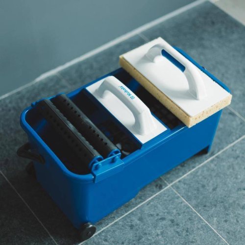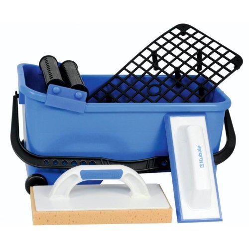 • sada obsahuje - vedro obkladačské 20 l, mriežka, sada koliesok (KU1524), dvojité valčeky (KU1525), hladítko s morskou špongiou rezanou (KU0387), hladítko škárovacej modrej (KU0325)