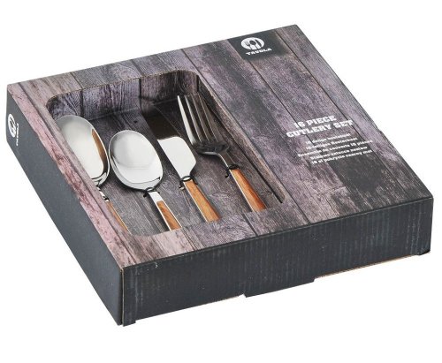 Súprava je vhodná do umývačky riadu. Tento príborový set je nielen krásny, ale aj praktický. Môžete ho používať každý deň alebo na špeciálne príležitosti. Vaši hostia budú ohromení jeho kvalitou a štýlovým vzhľadom. Je vyrobený z nerezovej ocele a má 16 kusov. Jeho nerezový dizajn dodá vášmu stolu atmosféru a eleganciu. Materiál: Nerezová oceľ 18/0 Počet kusov: 14Design: strieborný / drevo