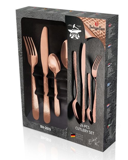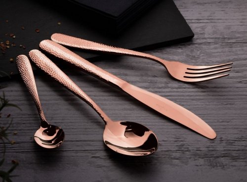 - Sada 24 ks obsahuje: - 6 x jedálenský nôž - 6 x jedálenská vidlička - 6 x polievková lyžica - 6 x čajová lyžička - materiál: leštená nerezová oceľ - satinové matné medené prevedenie - ľahké čistenie - darčekové balenie - ...