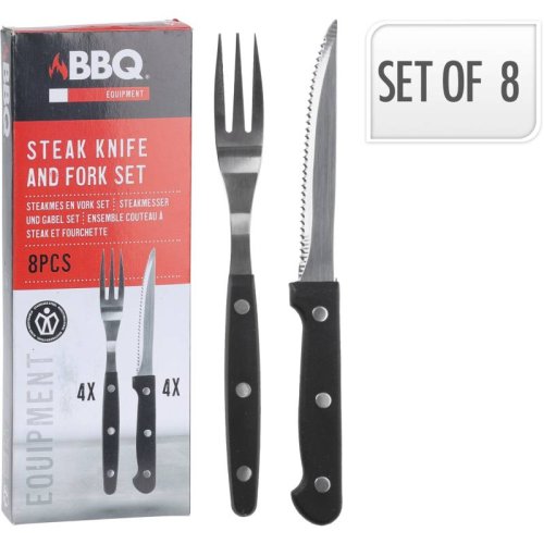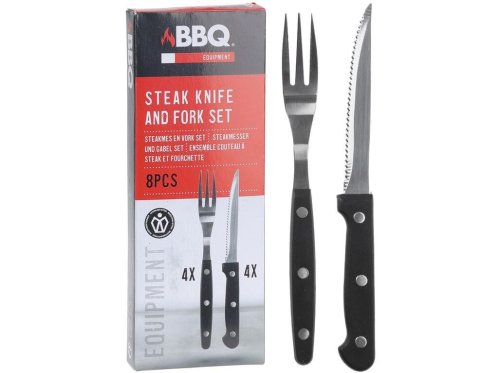 Elegantná a odolná sada steakových nožov a vidličiek pre perfektné stolovanie pri grilovaní, nedeľnom obede aj slávnostnú večeru. Kombinácia ostrých čepelí z kvalitnej nerezovej ocele a pohodlných čiernych rukovätí z PP plastu zaisťuje skvelý zážitok pri každom súste.