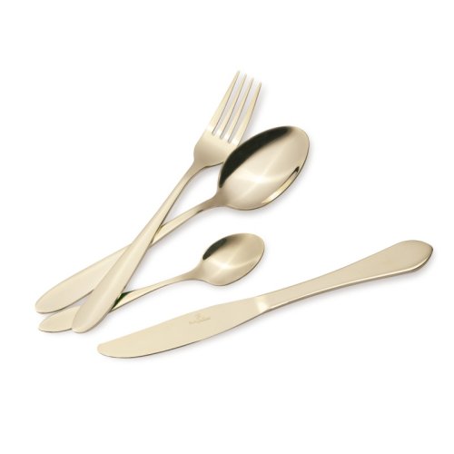 Súprava príborov z nerezu 24 ks Champagne Collection je elegantnou voľbou pre každodenné aj slávnostné stolovanie. Jemný odtieň šampanskej farby v kombinácii so zrkadlovým leskom dodáva celej sade luxusný vzhľad.