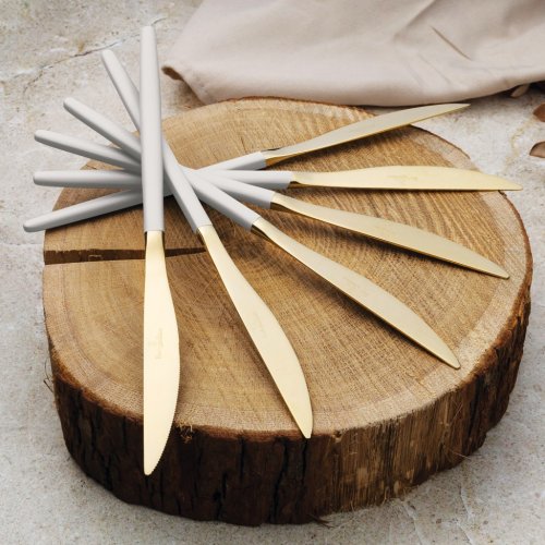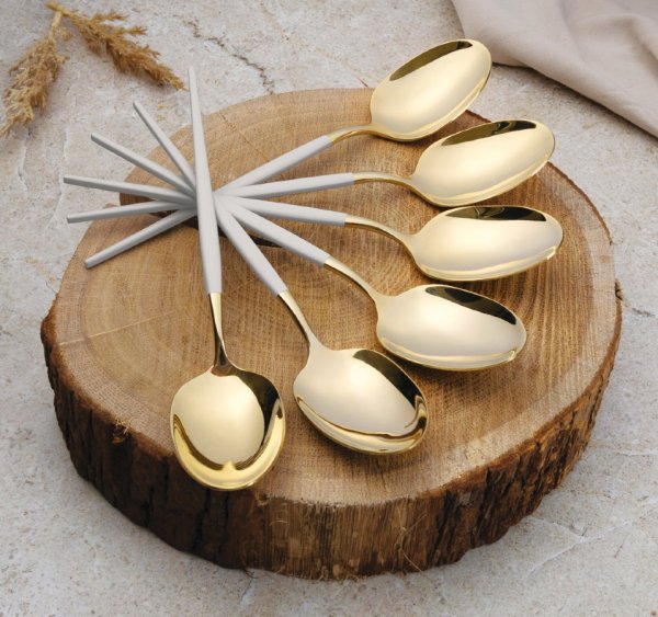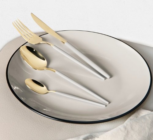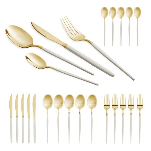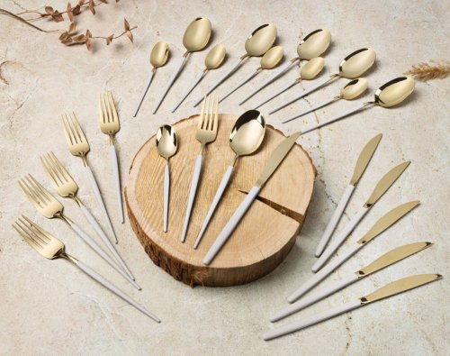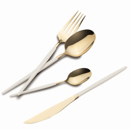 - Materiál: Nerezová oceľ s leštenou povrchovou úpravou- Sada obsahuje:- Nôž 6 ks 7,0 mm- Vidlička 6 ks 4,0 mm- Lyžica 6 ks 4,0 mm- Čajová lyžička 6 ks 2,7 mm- Farba: zlatá champagne / krémová sahara- …