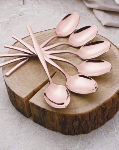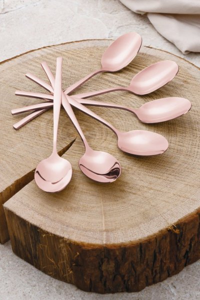 - Materiál: Nerezová oceľ s leštenou povrchovou úpravou - Sada obsahuje: - Nôž 6 ks 7,0 mm - Vidlička 6 ks 4,0 mm - Lyžica 6 ks 4,0 mm - Čajová lyžička 6 ks 2,7 mm - Farba: ružovo -zlatá rose gold- elegantný …