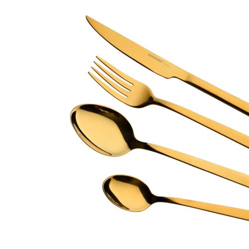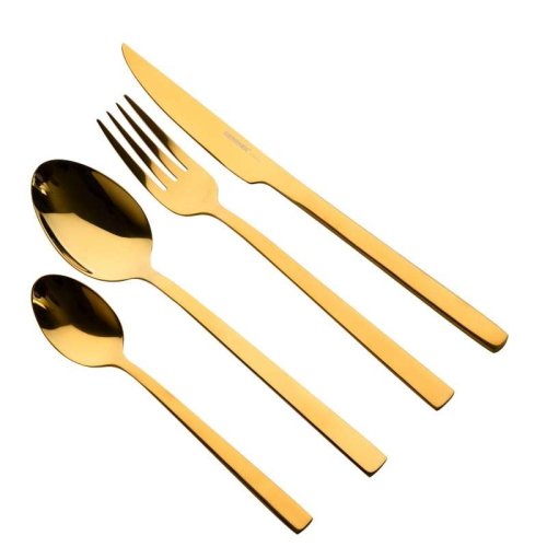 Sada príborov Bergner Sofia Gold 24dielna je vyrobená z nerezovej ocele. Ponúka dlhú životnosť pri používaní a odolnosť voči akejkoľvek situácii, ktorou môžu trpieť . •Skladá sa z 24 kusov. Príbor Bergner Sofia Gold sa skladá zo 6 lyžíc, 6 vidličiek, 6 nožov a 6 čajových lyžičiek. Súprava príborov s moderným a elegantným dizajnom. • Predstavuje inovatívny dizajn. Sú to kompletné a moderné príbory. Úplne ideálny pre použitie pri zvláštnej príležitosti, magickom dni alebo dátume na zdieľanie s blízkymi doma.•Leskl ý vzhľad. Nerezová sada príborov Bergner Sofia Gold má veľmi lesklý zlatý povrch. Domácemu stolu dodáva vzhľad odlíšenia. • Veľmi praktické. Umožňuje veľmi ľahké čistenie. Navyše je ideálny do umývačky, vďaka svojej odolnosti. Rovnako tak jeho zlatá farba a elegantný vzhľad ovplyvní obsluhu stola. Premeňte svoje 24dielne príbory na ozdobu vášho stola a prekvapte svojich hostí kolekciou Sofía! Bergner predstavuje Sofiu, kolekciu, ktorá dokonale kombinuje funkčnosť a design. Môžete si užívať odolné, opakovane použiteľné a ľahko čistiteľné príbory bez toho, aby ste sa vzdali moderného a exkluzívneho dizajnu!