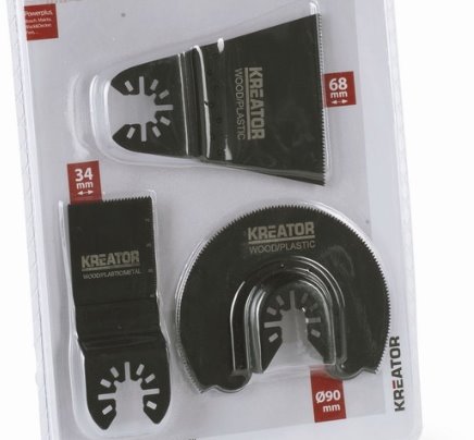 Set KRT990040 značky Kreator vám uľahčí rezanie do dreva, kovu aj plastu. V plastovom obale sa nachádzajú rezné nože s dĺžkou 34 a 68 mm. Na prácu sa vám tiež bude hodiť segmentový rezný kotúč s rozmerom 90 mm.