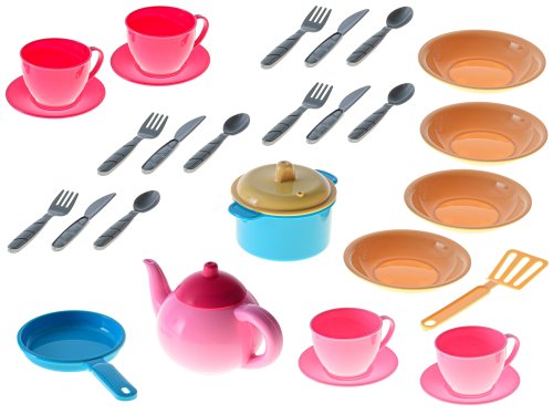 Neviete si rady s deťmi v kuchyni? Zaobstarajte im kuchárske náčinie, nech môžu variť s vami. Sada riadu obsahuje kanvicu, hrniec, panvicu, taniere, príbory, šálky a podšálky. Vhodné pre deti od 3 rokov.