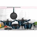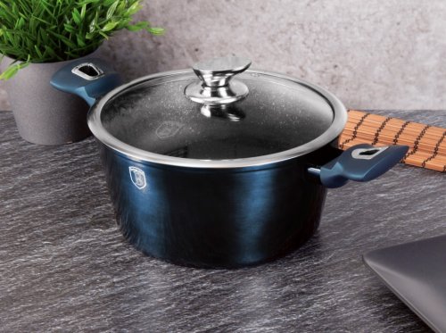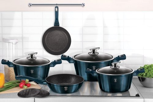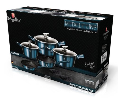 Luxusná sada riadu BerlingerHaus z kolekcie Aquamarine Metallic Line v atraktívnom dizajne zaujme nielen vzhľadom, ale aj špičkovými vlastnosťami. Vďaka 3-vrstvovému nepriľnavému povrchu s mramorovým efektom sa potraviny nepripaľujú a riad sa ľahko čistí. Súprava je vhodná pre zdravé varenie s minimom tuku a pre všetky typy sporákov vrátane indukcie.