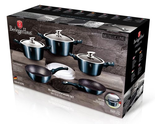 Hľadáte vhodnú sadu riadu do vašej kuchyne? Sadou získate všetky potrebné nádoby na varenie , či už budete variť pre seba alebo pre viac osôb. Veľkou výhodou je, že môžete objednať naraz viac riadu od overeného výrobcu BERLINGERHAUS. Sadu riadu zjednocuje jednotný dizajn , navyše modrá farba celej sady je univerzálna a vynímať sa bude v každej kuchyni.