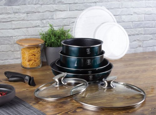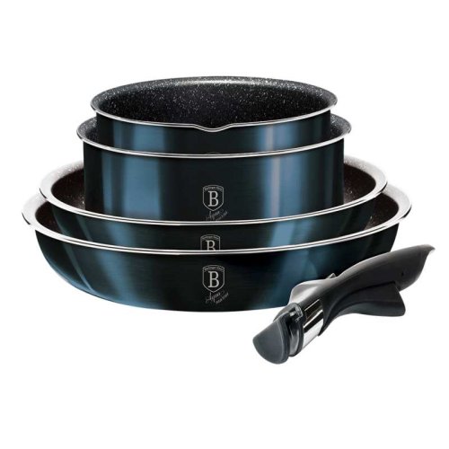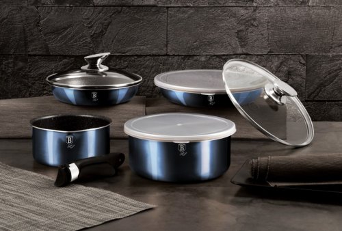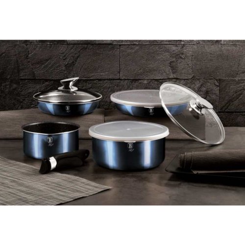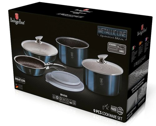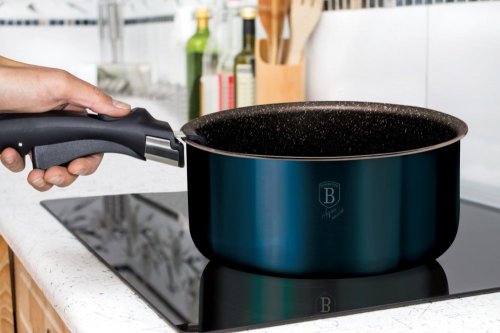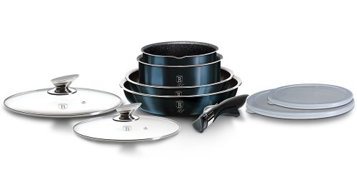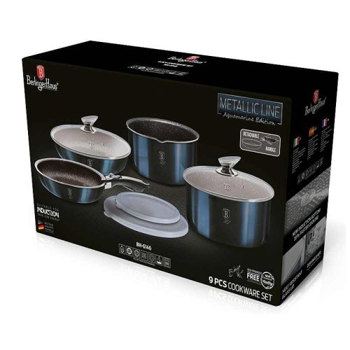 Luxusná sada riadu BerlingerHaus z kolekcie Aquamarine Metallic Line v atraktívnom dizajne zaujme nielen vzhľadom, ale aj špičkovými vlastnosťami. Vďaka 3-vrstvovému nepriľnavému povrchu s mramorovým efektom sa potraviny nepripaľujú a riad sa ľahko čistí. Súprava je vhodná pre zdravé varenie s minimom tuku a pre všetky typy sporákov vrátane indukcie.