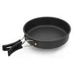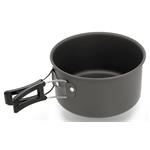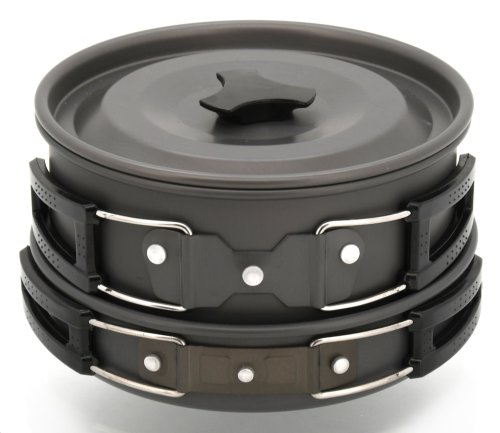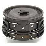 Táto sada z anodizovaného hliníka obsahuje panvičku 18 x 4 cm, kotlík 17 x 9 cm, kanvicu 15 x 7,5 cm a veko s priemerom 17 cm. Vďaka odstupňovaným veľkostiam sa dá riad zložiť do seba . Pre pohodlnú manipuláciu sú hrnce vybavené sklápacími držiakmi so silikónovými návlekmi . Všetko je navyše uložené v praktickej sieťovej taške , takže sa sada skvele prenáša.