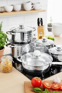 Táto viacúčelová nerezová sada riadu umožňuje pohodlnú prípravu viacerých jedál súčasne – dusenie mäsa, varenie polievok, ryže, cestovín, omáčok aj vyprážanie. Vďaka univerzálnym rozmerom a praktickému zloženiu získate kompletnú sadu hrncov na indukciu , plynový aj elektrický sporák.