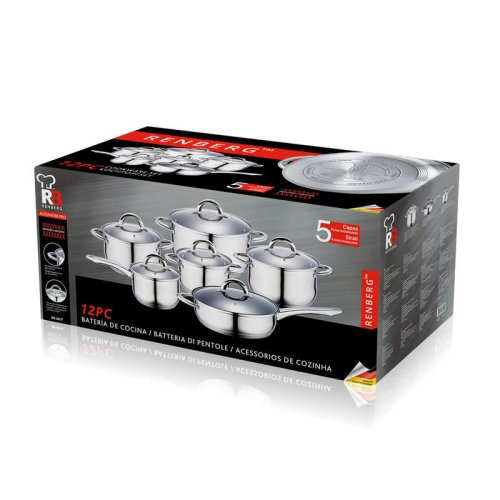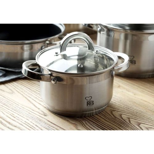 • materiál: nerezová oceľ - viacvrstvové sendvičové dno pre efektívne varenie - sklenené pokrievky s madlom z nerezovej ocele - celonerezové sú tiež postranné rukoväte - všetky úchyty sú spojené pevným nitom, takže sa neuvoľnia a nemusí sa doťahovať - panvica s nepriľnavým povrchom pre zdravé vyprážanie a restovanie bez pripaľovania - kombinácia matného a lesklého povrchu - vhodné pre všetky typy sporákov aj na indukciu - vhodné do rúry do maximálnej teploty 220 ° C / s pokrievkou 180 ° C - sada 12 ks obsahuje: - rajnica s pokrievkou 16 x 10,5 cm / 2,1 litra - hrniec s pokrievkou 16 x 10,5 cm / 2,1 litra - hrniec s pokrievkou 18 x 11,5 cm / 2,9 litra - hrniec s pokrievkou 20 x 12,5 cm / 3,9 litra - hrniec s pokrievkou 24 x 14,5 cm / 6,5 litra - panvica: 3,4 l, 24 x 7,5 cm s pokrievkou a nepriľnavým povrchom - rúra: 220 ° C (s pokrievkou 180 ° C) - umývačka: áno - indukcia: ano- sklokeramika: ano- plyn: ano- elektrina: ano- pokrievka: áno- povrch: nerezový- značka: Bergner
