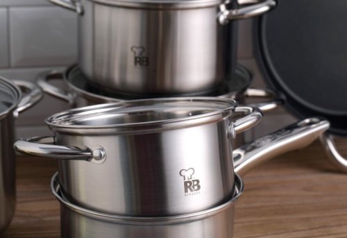 - materiál: nerezová oceľ - viacvrstvové sendvičové dno pre efektívne varenie - sklenené pokrievky s madlom z nerezovej ocele - celonerezové sú tiež postranné rukoväte - všetky úchyty sú spojené pevným nitom, …
