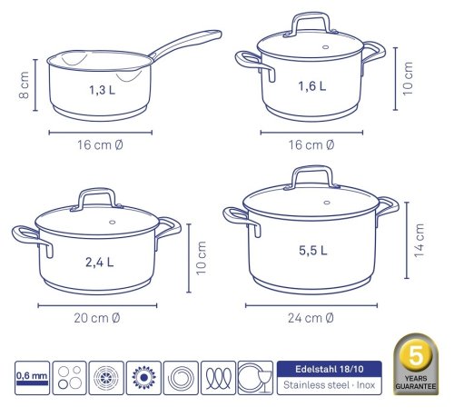 Hľadáte vhodnú sadu riadu do vašej kuchyne? Sadou získate všetky potrebné nádoby na varenie , či už budete variť pre seba alebo pre viac osôb. Veľkou výhodou je, že môžete objednať naraz viac riadu od overeného výrobcu KELA. Sadu riadu zjednocuje jednotný dizajn , navyše nerezová farba celej sady je univerzálna a vynímať sa bude v každej kuchyni.
