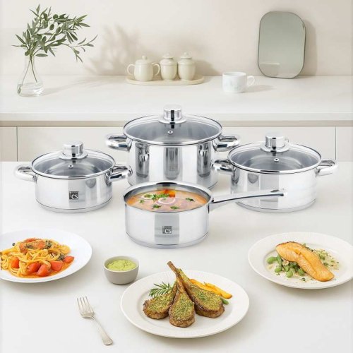 - materiál: ušľachtilá nerezová oceľ 18/10- kvalitné sendvičové dno pre rýchle a úsporné varenie- nerezové rukoväte sa nezahrievajú, zostávajú vždy chladné- žiaruvzdorné pokrievky s nerezovou rukoväťou- odlievacie …