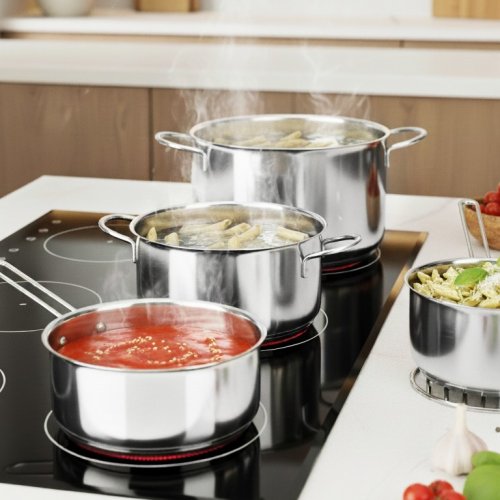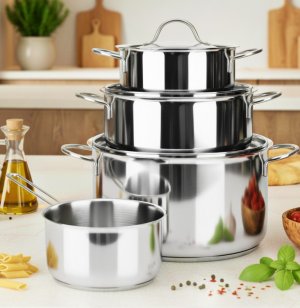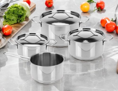 • materiál: nerezová oceľ - rovnomerný rozvod tepla po celom dni i stenách kastróla - skvelé vlastnosti pre varenie, dusenie aj smaženie - profi prevedenie navrhnuté pre vysokú funkčnosť v kuchyni - robustné a vysoko odolné spracovanie - premyslené odlievacie okraje pre pohodlné prelievanie obsahu bez kvapnutia - z vonkajšie strany upevnené nerezové rukoväte, žiadne skrutky ani spoje vo vnútri hrnca-rukoväte sa nemôžu uvoľniť a nezateká do nich voda, navyše sa pri varení nezahrievajú- odmerná stupnica v každom hrnci- jednoduché čistenie, vhodné do umývačky riadu- vhodné na všetky druhy sporákov aj na indukciu - vhodné do rúry do teploty 220 ° C - kompletná sada 7 ks obsahuje: - rajnica 17 x 8 cm / 1,3 litra - kastról s pokrievkou 17 x 10 cm / 1,5 litra - kastról s pokrievkou 19 x 10 cm / 2 litre- hrniec s pokrievkou 21 x 10 cm / 3 litre