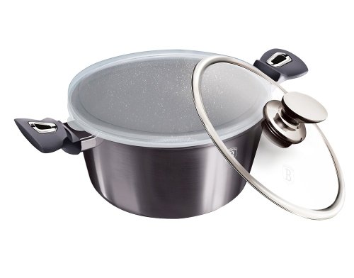 - doménou tejto sady je 3-vrstvový povrch s mramorovým dizajnom charakteristický svojou dokonalou nepriľnavosťou, žiadne potraviny sa nepripaľujú a vďaka tomu sa kastróly aj panvice veľmi ľahko čistia
