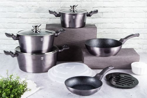 Hľadáte vhodnú sadu riadu do vašej kuchyne? Sadou získate všetky potrebné nádoby na varenie , či už budete variť pre seba alebo pre viac osôb. Veľkou výhodou je, že môžete objednať naraz viac riadu od overeného výrobcu BERLINGERHAUS. Sadu riadu zjednocuje jednotný dizajn , navyše čierna farba celej sady je univerzálna a vynímať sa bude v každej kuchyni.