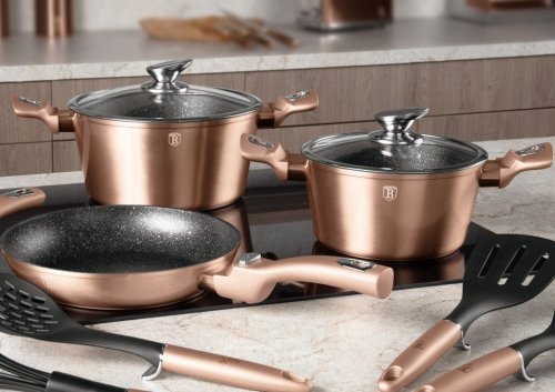 Hľadáte vhodnú sadu riadu do vašej kuchyne? Sadou získate všetky potrebné nádoby na varenie , či už budete variť pre seba alebo pre viac osôb. Veľkou výhodou je, že môžete objednať naraz viac riadu od overeného výrobcu BERLINGERHAUS. Sadu riadu zjednocuje jednotný dizajn , navyše zlatá farba celej sady je univerzálna a vynímať sa bude v každej kuchyni.