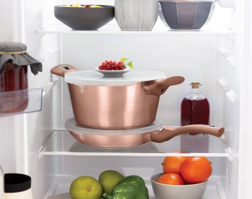 Bohato vybavená sada riadu z metalickej rosegold kolekcie zaujme nielen neprehliadnuteľným moderným dizajnom, ale predovšetkým svojimi jedinečnými vlastnosťami. V sade sú navyše 3 praktické viečka, ktorými je možné nádoby uzavrieť.
