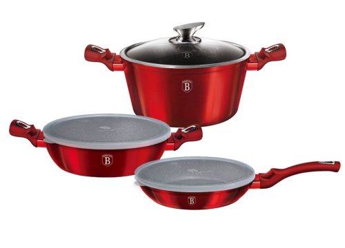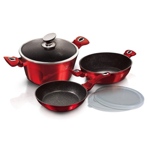 - doménou tejto sady je 3-vrstvový nepriľnavý povrch s mramorovým dizajnom, charakteristický dokonalou nepriľnavosťou, žiadne potraviny sa nepripaľujú a vďaka tomu sa kastróly aj panvice veľmi ľahko čistia