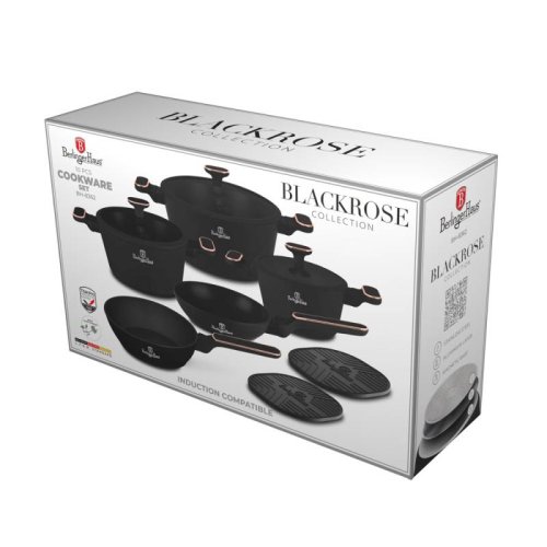 Objavte kúzlo varenia s touto exkluzívnou sadou, ktorá vás očarí nielen svojim dizajnom v matnej čiernej s ružovo zlatými detailmi, ale aj špičkovými vlastnosťami titánového nepriľnavého povrchu TitanPro. Každý kus je starostlivo navrhnutý, aby vám uľahčil prípravu jedál a dodal vašej kuchyni šmrnc moderného minimalizmu.