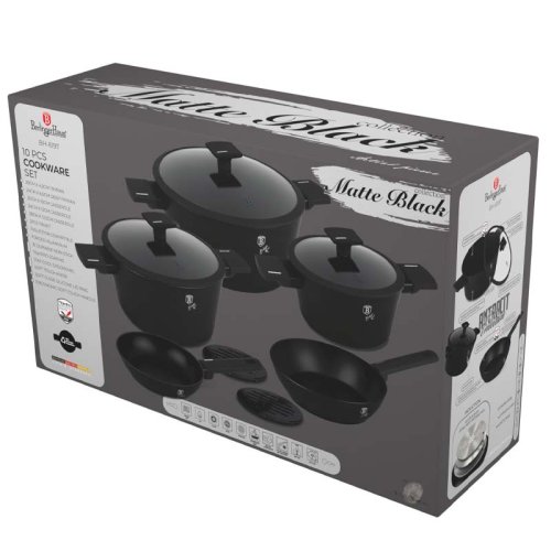 Magicky čierna sada riadu zo série Matte Black zaujme nielen moderným dizajnom, ale predovšetkým svojimi jedinečnými vlastnosťami. Doménou tejto sady je 3-vrstvový titánový povrch charakteristický svojou dokonalou nepriľnavosťou, žiadne potraviny sa nepripaľujú a vďaka tomu sa kastróly aj panvice veľmi ľahko čistia. Zároveň je vhodný na zdravé varenie s minimom tuku, v závislosti na použitých surovinách pokojne aj bez jedinej kvapky tuku. Vnútorná aj vonkajšia vrstva neobsahujú žiadne škodliviny, výsledné pokrmy tak nestrácajú varením svoje vitamíny.