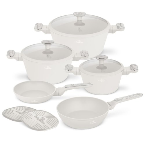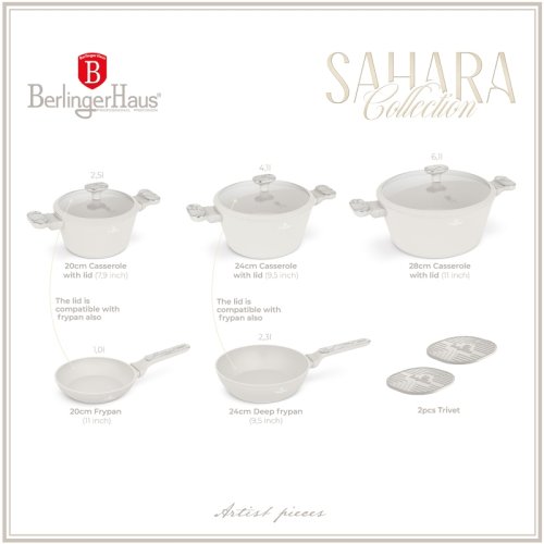 Sahara Marble Collection prináša kombináciu matného krémového povrchu a elegantného mramorového efektu. Táto sada je nielen estetickým skvostom, ale aj výkonným nástrojom pre každodenné varenie.