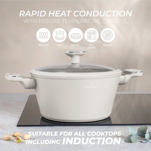 Každý kus je vybavený dnom s rýchlym prenosom tepla. Varenie je efektívne, či už máte indukciu, plyn alebo sklokeramiku.