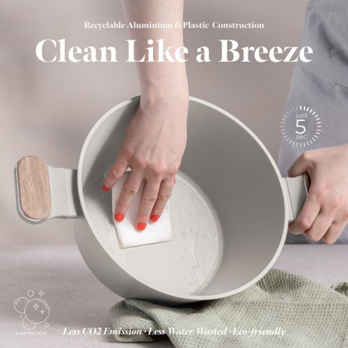 Trojvrstvový titánový povrch je navrhnutý tak, aby vydržal každodenné výzvy. Nelepí, nepripaľuje, ľahko sa čistí a pritom neobsahuje škodliviny - pre zdravšie a pohodlnejšie varenie.