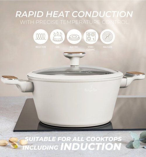 Každý kus je vybavený dnom s rýchlym prenosom tepla. Varenie je efektívne, či už máte indukciu, plyn alebo sklokeramiku.