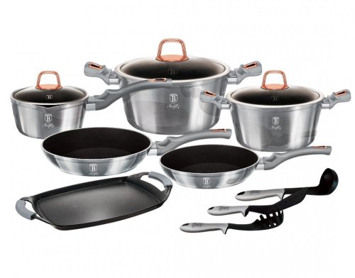 Hľadáte vhodnú sadu riadu do vašej kuchyne? Sadou získate všetky potrebné nádoby na varenie , či už budete variť pre seba alebo pre viac osôb. Veľkou výhodou je, že môžete objednať naraz viac riadu od overeného výrobcu BERLINGERHAUS. Sadu riadu zjednocuje jednotný dizajn , navyše strieborná farba celej sady je univerzálna a vynímať sa bude v každej kuchyni.