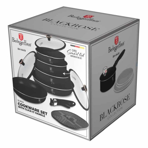 Objavte sadu riadu Berlinger Haus, ktorá kombinuje praktickosť, štýl a moderné technológie . S touto sadou zvládnete akékoľvek varenie – od vyprážania a dusenia po pečenie. Vďaka stohovateľnému dizajnu ušetríte miesto v kuchyni a múdre veká vám uľahčia manipuláciu pri varení. Ergonomické rukoväte Click It s mäkkým povrchom zaisťujú pohodlnú a bezpečnú prácu bez popálenia.