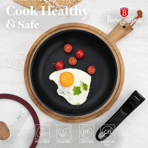 Minimalistický matný povrch v kombinácii bordó a svetlého dreva dodáva sade elegantný vzhľad, zatiaľ čo turbo indukčné dno zaisťuje rýchle a rovnomerné varenie. Veká z tvrdeného skla so systémom Soft Close umožňujú bezpečné manipulovanie a kontrolu varenia.