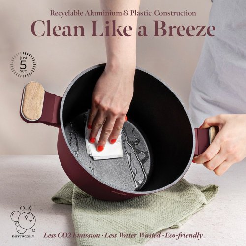 Vstúpte do sveta profesionálneho varenia s touto exkluzívnou sadou riadu, ktorá kombinuje ľahkosť kovaného hliníka s prémiovým nepriľnavým povrchom TitanPro. Každý kus je navrhnutý tak, aby vám uľahčil prípravu pokrmov a zároveň priniesol do vašej kuchyne štýl a funkčnosť v minimalistickom dizajne v matnej bordovej a drevených detailoch.