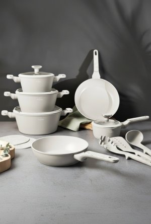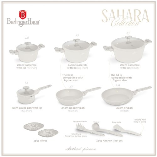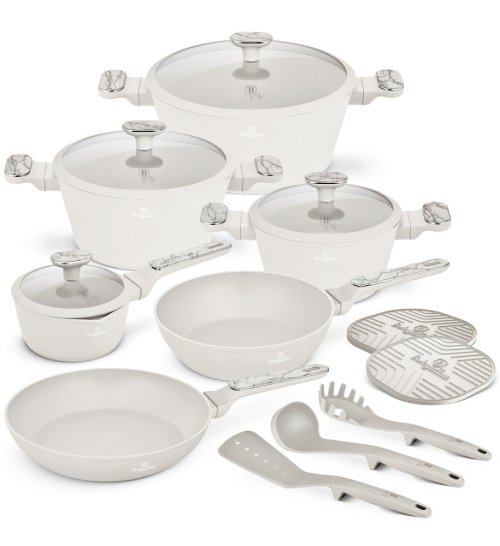 Sahara Marble Collection prináša kombináciu matného krémového povrchu a elegantného mramorového efektu. Táto sada je nielen estetickým skvostom, ale aj výkonným nástrojom pre každodenné varenie.