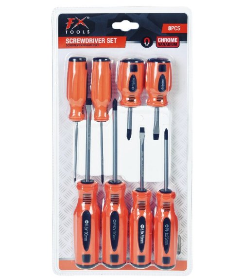 Vysoko kvalitná sada skrutkovačov z chróm-vanádiovej ocele s magnetickými hrotmi a ergonomickými úchytmi v oranžovo-čiernom prevedení. Ideálne pre domáce aj profesionálne použitie.