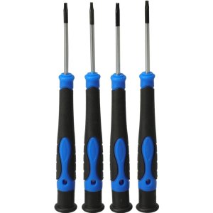 Praktická sada skrutkovačov s držiakom, v modro-čiernom prevedení, balené v zásobníku s PP zmrštovacím obalom.