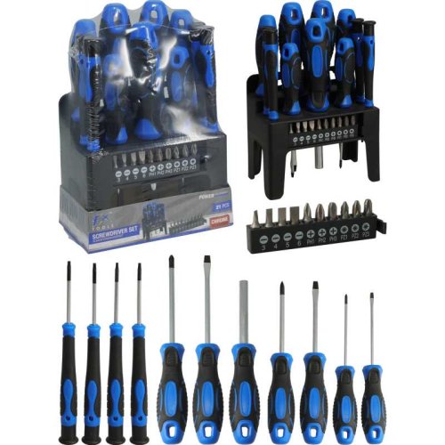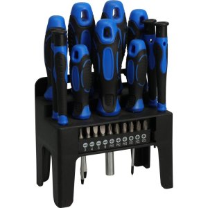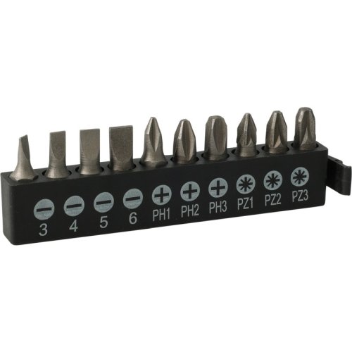 Prednosti: kompaktná a prehľadná sada vhodná na domáce i profesionálne použitie, praktický držiak a magnetické bity zaisťujú ľahkú prácu so skrutkami.