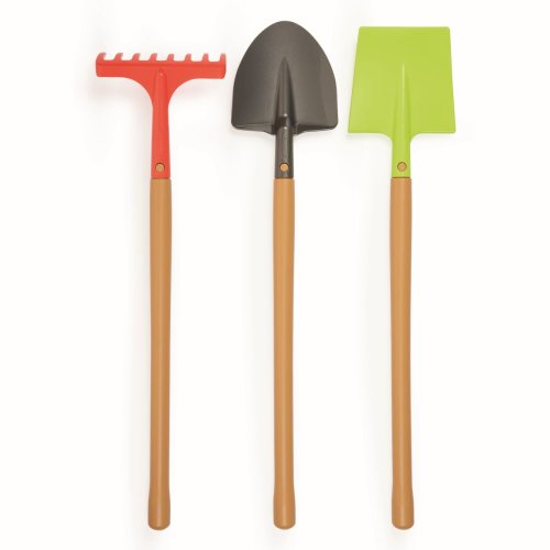 Súprava veľkého záhradníckeho náradia v dĺžke 70 cm. Obsahuje rýľ, lopatu a hrable.