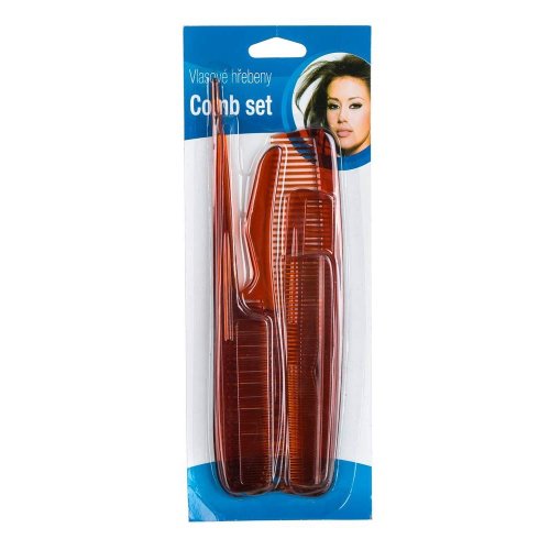 Sada 6 kusov plastových hrebeňov rôznych tvarov a veľkostí. Farba hnedá, materiál plast.