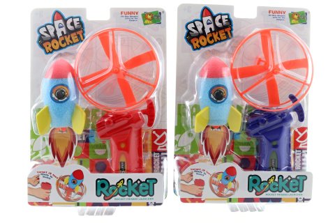 Vystreľovacia raketa. Materiál plast. Sada obsahuje raketu, vrtuľu a vystreľovaciu základňu. Rozmery balenia 18x25x5 cm. 2 farby - dodávame podľa skladovej dostupnosti. Vek 3+