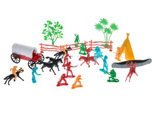 Súprava western figúrky 31 ks s kočiarom a doplnkami