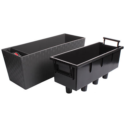 Ak hľadáte dizajnový kvetináč na vaše okno, balkón alebo záhradu, bude samozavlažovací kvetináč Supreme tou správnou voľbou. Vďaka zavlažovaciemu systému Aqua System je vlaha rastlinám postupne dodávaná zo spodného zásobníka na dne kvetináča. Voda sa pritom nenalieva priamo do zeminy, ale zo strany do zavlažovacieho otvoru. Jeho súčasťou je horizontálny integrovaný systém merania, pomocou ktorého poznáte, koľko je v kvetináči vody. Na dne kvetináča nechýba ani prepadový odtok (možnosť jeho vyvŕtania). Hrantík ponúkame v dvoch farbách a veľkostných variantoch: Supreme 50 s dĺžkou 50 cm a Supreme 75 s dĺžkou 75 cm. Kvetináč má ľahko vyberateľné pestovateľské nádoby, ktoré zaručujú pohodlné používanie. Hrantík je vyrobený z veľmi odolného plastu, ktorý odolá mrazu aj pôsobeniu UV žiarenia. Supreme tak môžete mať na záhrade alebo balkóne bez obáv po celý rok. Parametre: Supreme 50 Dĺžka: 50 cm Výška: 19 cm Šírka: 19 cm Pestovateľské nádoby: 1 ks Supreme 75 Dĺžka: 75 cm Výška: 19 cm Šírka: 19 cm Pestovateľské nádoby: 2 ks