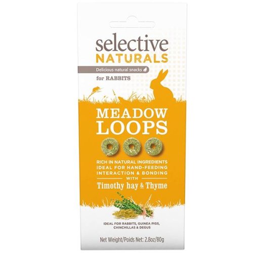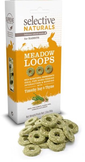 Zdravé prírodné maškrty Selective Naturals v tvare krúžkov pre králiky, morčatá a ďalšie drobné cicavce. Ideálne na podávanie z ruky, ktoré zbližuje a pomáha vytváraniu bližšieho vzťahu so zvieraťom. Krúžky Meadow Loops s bojinkovým senom a tymiánom. Upečené z prírodných surovín v pekárni Supreme v srdci Suffolku. plné prírodných surovín nízky obsah tukov a vysoký obsah vlákniny bez pridaného cukru bez umelých farbív Analytické zložky: Hrubá bielkovina 7%, hrubý tuk 2%, hrubá vláknina 14%, vlhkosť 11%. Zloženie: Pšeničná múka, mleté seno z bojinku lúčneho (11 %), mleté lucernové seno, mleté struky rohovníka, hrášok, sušený tymián (4 %), sójový olej, ľanové semienko.