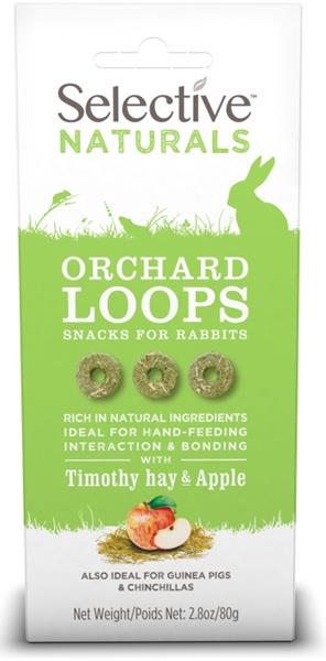 Zdravé prírodné maškrty Selective Naturals v tvare krúžkov pre králiky, morčatá a ďalšie bylinožravé drobné cicavce. Ideálne na podávanie z ruky, ktoré zbližuje a pomáha vytváraniu bližšieho vzťahu so zvieraťom. Krúžky Orchard Loops s bojínkom a jablkom. Upečené z prírodných surovín v pekárni Supreme v srdci Suffolku.