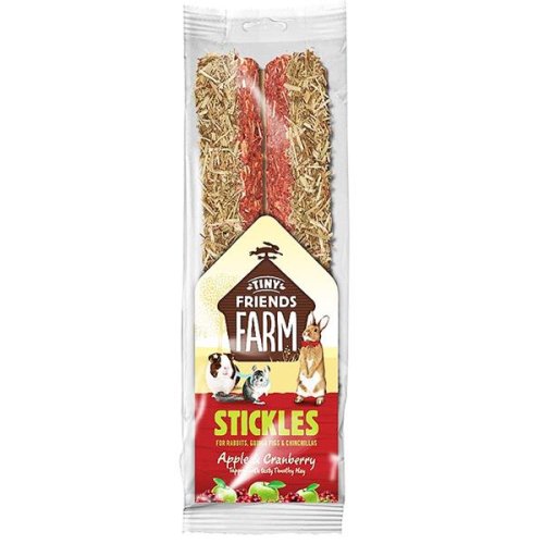 Chrumkavé pečené tyčky s jablkami a brusnicami sypané chutným bojinkovým senom sú určené najmä pre králiky, morčatá a činčily. Prírodné suroviny dodávajú maškrtám prirodzenú chutnosť a sú zdrojom vitamínov a minerálov, ktoré posilňujú imunitný systém maznáčikov. Veľké množstvo obsiahnutej vlákniny podporuje správne trávenie. Tyčinky stimulujú hlodací inštinkt a pomáhajú v obrusovaní zubov. Maškrtu možno zvieraťu zavesiť do klietky pre zábavu a podporu prirodzeného pudu zháňania potravy. Na zavesenie v klietke je tyčkou prevlečený jutový povrázok (ekologicky šetrná alternatíva k predtým používanej plastovej ihle). Vlastnosti maškrty: