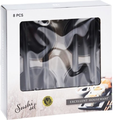 • sushi set pre servírovanie sushi doma- vhodné tiež na polievku, šalát, omáčku- materiál: keramika, bambusové drevo- 4 čierne keramické servírovacie misky- 4 páry paličiek z bambusového dreva- misky môžu do umývačky riadu- perfektný darček pre milovníkov sushi- sada 8 ks obsahuje: - 4 x miska 10,5 x 5,3 cm - 4 x pár bambusových paličiek 24 cm - farba: čierna / drevo - značka: Excellent Houseware